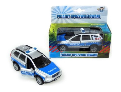 Auto policja Volvo 13cm z napędem , z otwieranymi drzwiami , ze światłem i dźwiękami .