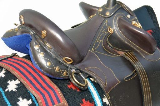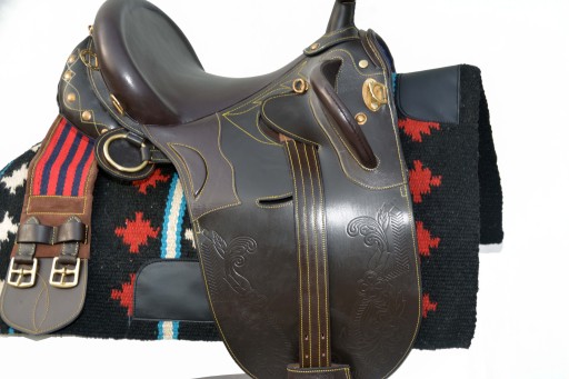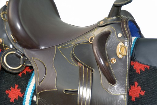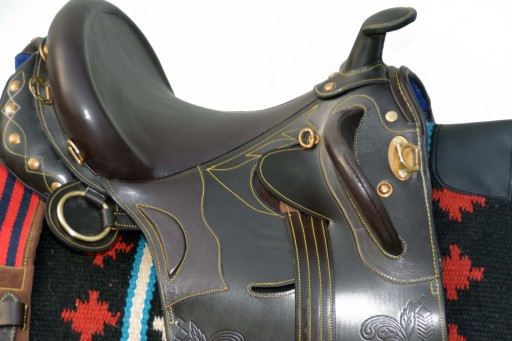 Siodło australijskie 17,5 C.Siodło w całości wykonane z bardzo dobrej jakości skóry licowej. Siodło jest bardzo lekkie .Wykonane w zakładzie rymarskim w Włoszech .Posiada głębokie , miękko wyściełane siedzisko.Dzięki dobrze wyprofilowanym blokom kolanowym oraz dobremu wyważeniu w siodle łatwo utrzymać właściwą i poprawną sylwetkę na koniu,oraz przednie łopatki które trzymają jeźdzca ,praktycznie nie ma możliwości aby spaść z tego siodła. Elastyczna terlica zapewnia wysoki komfort dla jeżdżca i kona.