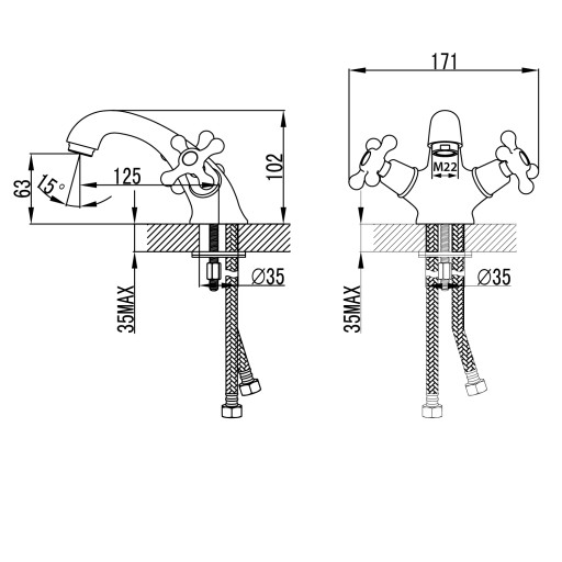 ВИКТОРИЯ хромированный смеситель для умывальника в стиле ретро - VC02