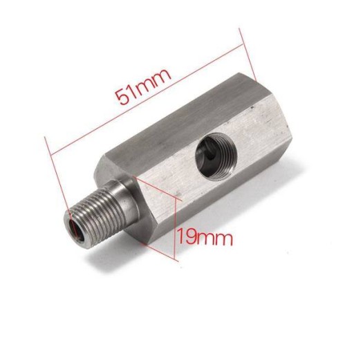 Uniwersalny adapter 1/8'' BSPT do wkręcenia w miejsce oryginalnego czujnika ciśnienia oleju, aby umożliwić podłączenie zasilania olejem turbo lub nieoryginalnego wskaźnikiem ciśnienia oleju z gwintem 1/8" NPT.