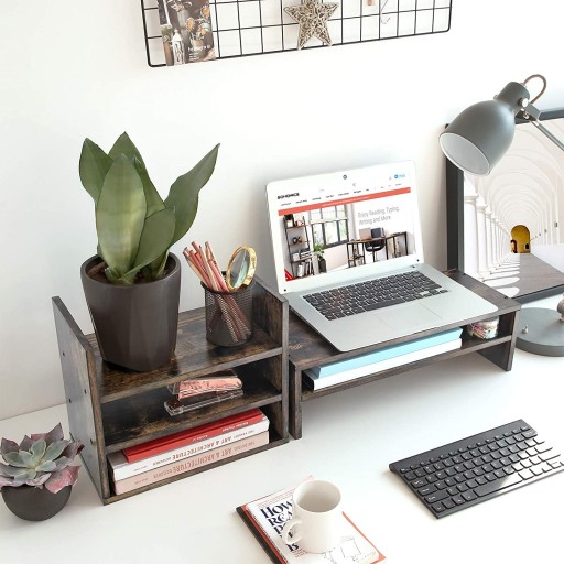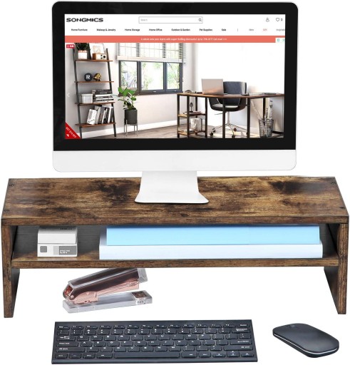 Dobry porzdek dobry dzień rozpoczyna si od porzdnego biurka. Ten stojak na monitor ma du powierzchni i dodatkow pók w dolnej czci co pomaga w uporzdkowaniu wszystkich przedmiotów na biurku. Kto nie chce mie porzdnego miejsca pracy Zdrowy styl pracy zbyt mocno obciasz kark i plecy gdy dotkniesz komputera W takim razie ekran naley ustawi na wygodnej wysokoci. W ten sposób podczas pracy moliwa jest zdrowa postawa. Kady may krok robi rónic. Pracuj zdrowiej ni kiedykolwiek wczeniej Wybynie wewntrz spokój Ani Twoje ycie prywatne ani wiat pracy nie potrzebuj wiele ciekawych dodatków. Proste linie bez niepotrzebnych chwil ten stojak na ekran w stylu vintage wniesie pokój i spokój do biura lub gabinetu. Nawet w przypadku bardzo skomplikowanych zadań roboczych mona zachowa chodn gow Stabilne trzymanie grubo od wewntrz. Ten stojak na laptopa jest lekki ale mimo to wytrzymay jest wystarczajco mocny aby pomieci ekran na powierzchni do odkadania akt ksiki lub inne przybory biurowe w przegródce nie musisz si martwi o jego stabilno Nie zadowalaj Nasz przyjazny dzia obsugi klienta chtnie doradzi. Pozwól sobie na ten stojak na monitor firmy Songmics i ponie pierwszy krok w komfortowej pracy w jednym