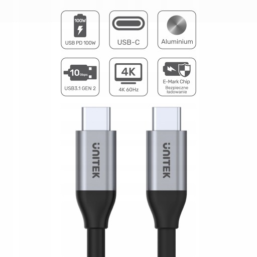 КАБЕЛЬ UNITEK USB C 10 Гбит/с 4K 60 Гц 20В 5А