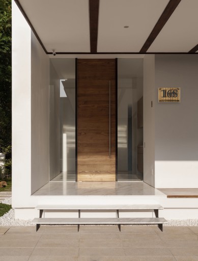 Oryginalne i unikalne oznakowanie domu to nasza specjalność. Tym razem chcemy zaoferować produkt, który stworzyliśmy obserwując aktualne trendy w budownictwie jednorodzinnym. Obecnie 60% budowanych domów jest w stylu "nowoczesnej stodoły". Ta koncepcja nie znosi kompromisów i wymaga zastosowania naturalnych materiałów. Jednym z najpopularniejszych wykończeń jest drewno i dla tych, którzy decydują się na takie wykończenie stworzyliśmy dębową tabliczkę adresową. Aby tego było mało dębową podstawę tabliczki stworzyliśmy w formie lamel. Sam numer i ulica została wykonana z czarnej, matowej plexi i naklejona na transparentną plexi. Całość oddalona jest od podstawy dębowej za pomocą czarnych dystansów montażowych.
