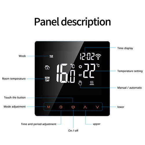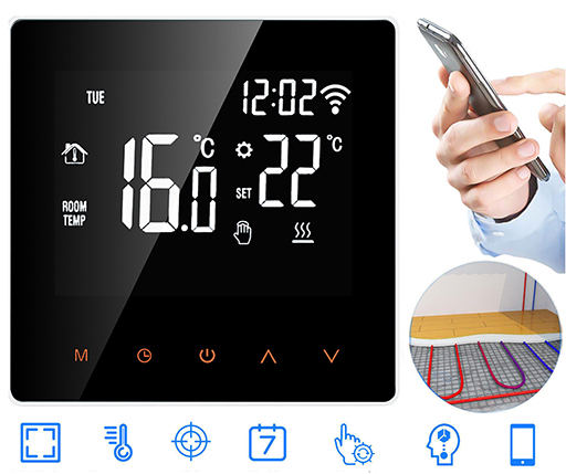 16A Programowanie tygodnia z ekranem dotykowym LCD inteligentny termostat elektryczny termostat do ogrzewania podłogowego wifi, Białe podświetlenie, pomarańczowe klawisze 10szt