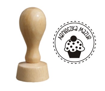 Personalizowana pieczątka z muffinką oraz Twoim napisem. Taka pieczątka będzie idealna do stemplowania papeterii, etykiet czy opakowań oraz do znakowania produktów handmade.