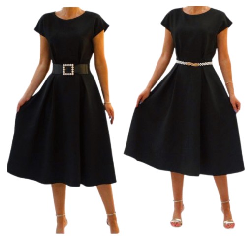 Pasek uszyty z tej samej tkaniny w komplecie, dopasowuje sukienkę do talii.