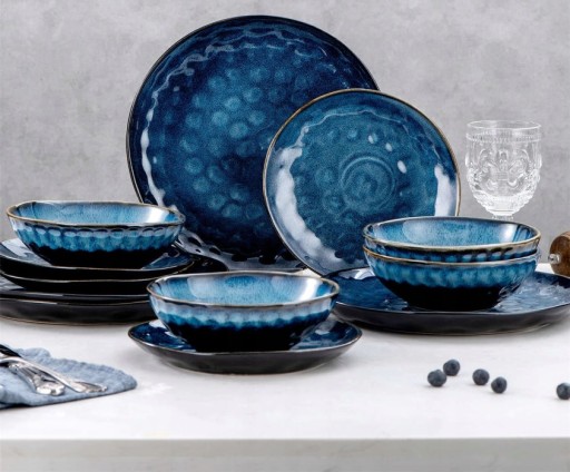 Столовая посуда STARRY, винтажный керамогранит, синий, сервиз на 8 персон/32 шт.