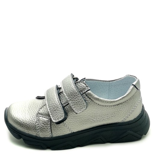 Wyjątkowy wygląd i wykonanie. Stylowe srebrne półbuty dla modnego dzieciaka. Miękka SKÓRZANA i PROFILOWANA wkładka gwarantuje komfort podczas noszenia. Wygodne wkładanie dzięki zapięciu na dwa rzepy.