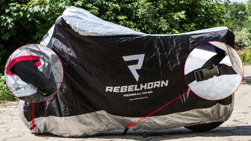- Wyposażony w zapięcie przytrzymujący pokrowiec na motocyklu
