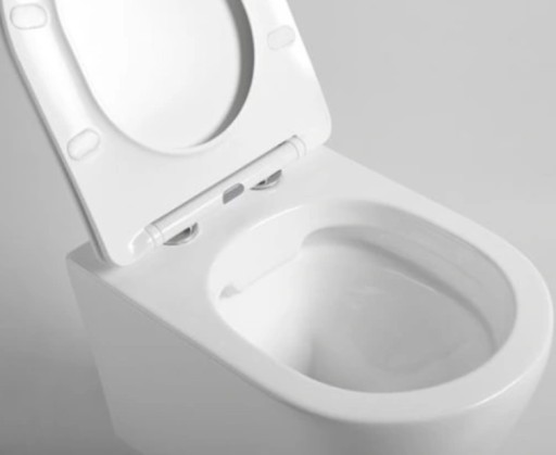 Muszla wykonana jest z ceramiki sanitarnej w kolorze śnieżnej bieli. Jej rozmiar pozwala na optymalne wykorzystanie przestrzeni, a innowaycjny systemem Rimless zapewnia funkcjonalność. W komplecie z muszlą dołączona jest deska wolnoopadająca SLIM wykonana z duroplastu, posiadająca metalowe zawiasy.