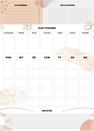 ✅ Planer został zaprojektowany w taki sposób, aby było możliwe zaplanowanie każdego miesiąca – wystarczy wpisać kolejne dni miesiąca w poszczególnych kwadratach z dniami miesiąca.