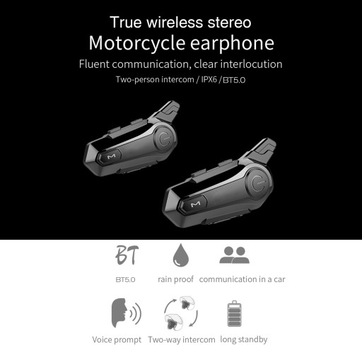 1. Zestaw słuchawkowy motocyklowy TWS zapewniający płynną komunikację, wyraźny domofon, dwuosobowy domofon/redukcja szumów CVC/6 poziom wodoodporny/BT 5.0.