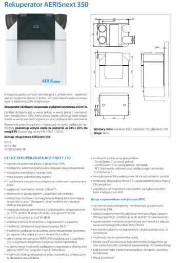 Rekuperator AERISnext 350 L VV TR (wersja lewa)