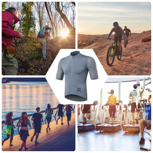 Ta koszulka rowerowa z krótkim rękawem jest wykonana z oddychającej tkaniny poliestrowej, aby zapewnić maksymalny komfort latem. Posiada 3 elastyczne tylne kieszenie i 1 zapinaną na zamek tylną kieszeń do wygodnego przechowywania akcesoriów rowerowych. To świetny wybór do jazdy na rowerze.