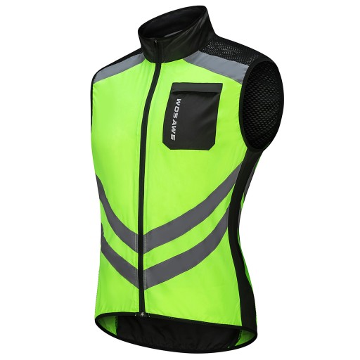 Ta kamizelka rowerowa jest wykonana z wysokiej jakości tkaniny poliestrowej, wodoodpornej i lekkiej. Konstrukcja bez rękawów i siateczkowy tył zapewniają chłód i suchość. Posiada szerokie odblaskowe paski, które zapewniają widoczność i bezpieczeństwo w słabym świetle, świetny sprzęt ochronny do zajęć nocnych, takich jak jazda na rowerze, bieganie, jogging, jazda na deskorolce, spacery itp.
