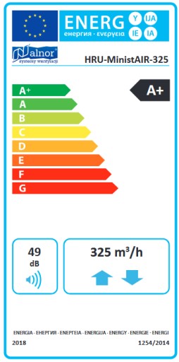 Wydajność odzysku ciepła HRU-MinistAIR-325
