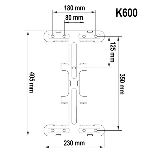 pozwala dostosować szerokość otworów montażowych do różnych telewizorów zgodnych ze standardem VESA. Pełna zgodność rozstawu otworów montażowych VESA z zakresu od 100x100 mm do 600x400 mm