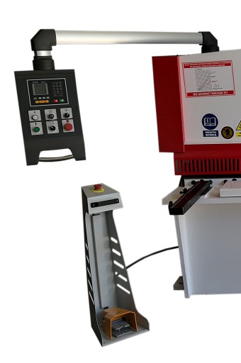 - Hydrauliczne dociski blachy na całej długości cięcia