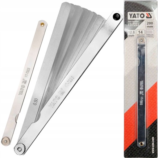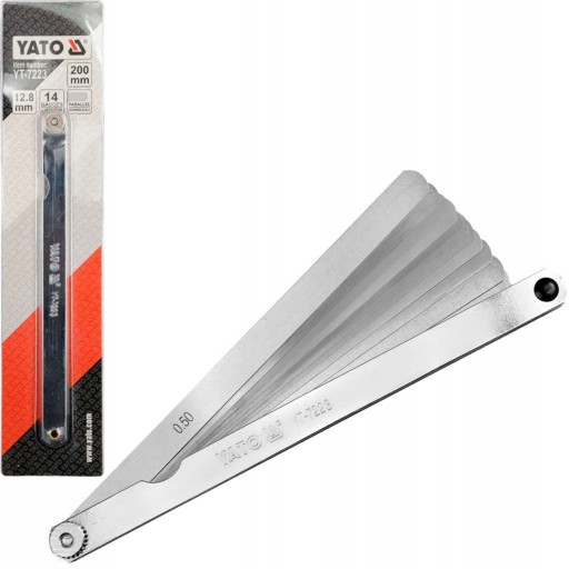 Przeznaczony do precyzyjnego ustawiania szerokości szczelin / np. między stykami elektrycznymi /. Zawiera 14 listków pomiarowych o różnych grubościach, wykonanych z utwardzanej stali sprężynowej. Długość elementu pomiarowego 200 mm , szerokość 12,4 mm.