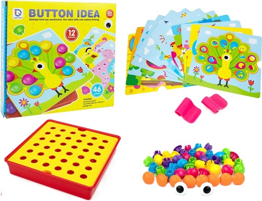✔️ Wspaniała układanka edukacyjna guzikowa wspomagająca naukę nazw kolorów, liczenia i rozpoznawania kształtów. Zabawa polega na wpinaniu guziczków w otwory obrazka w odpowiednim kolorze. Zabawa guzikową mozaiką to wspaniała przygoda. Możliwość stworzenia unikatowego dzieła dostarczy dziecku mnóstwo satysfakcji i sprawi, że poczuje się prawdziwe dumne z efektu swojej pracy. Zestaw z pewnością dostarczy mnóstwo radości i zabawy.