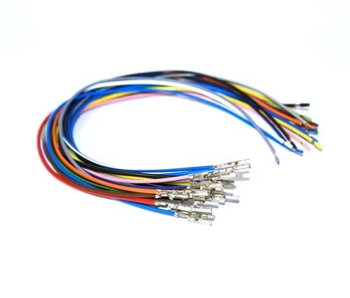 Wiązka 20 przewodów elektrycznych typu FLRY (wykorzystywanych w przemyśle motoryzacyjnym) o długości 30cm z terminalami pasującymi do wtyczek urządzenia DET3.
