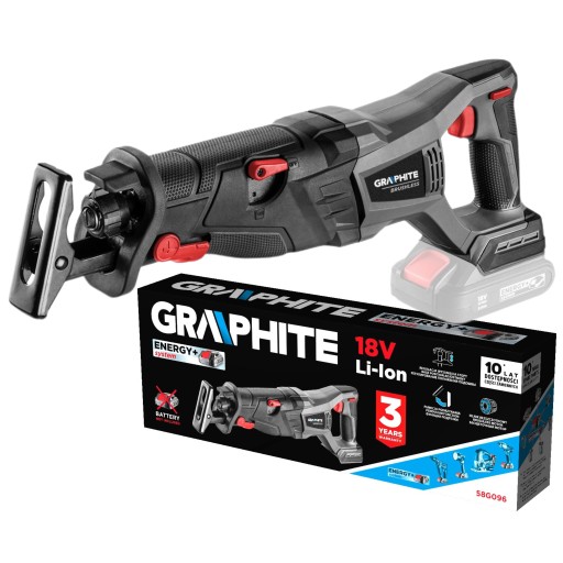 Pilarka szablowa akumulatorowa bezszczotkowa Energy+ 18V, bez akumulatora 58G096 GRAPHITE to wygodna w użytkowaniu pilarka typu szablowego, umożliwiająca pracę w trudno dostępnych miejscach. Urządzenie należy do serii nowoczesnych narzędzi akumulatorowych Energy+. Kompatybilne jest z litowo-jonowymi bateriami o mocy 18 V.