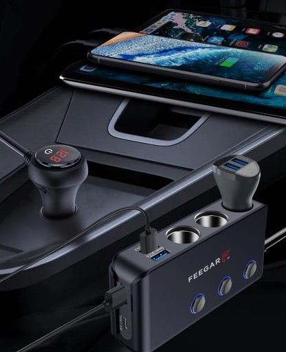 CIGA marki Feegar to świetne akcesorium do Twojego samochodu. Jest to mocny i wielofunkcyjny rozdzielacz gniazda samochodowego z wyłącznikiem głównym oraz 3 niezależnymi wyłącznikami, który idealnie sprawdzi się w Twoim pojeździe. Nie musisz wyciągać innych urządzeń z zapalniczek jeśli nie chcesz z nich korzystać po prostu wciśnij przycisk, który odetnie zasilanie w odpowiednim porcie. Jest to Polska marka w branży elektroniki użytkowej.
