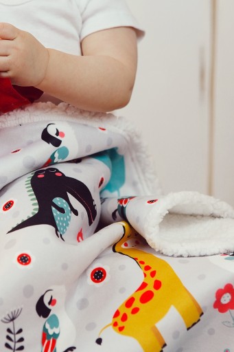 Dwustronny kocyk marki Hamur Home doskonale nadaje się dla dzieci i niemowląt. Stanowi połączenie dwóch tkanin: delikatnego polaru z uroczym wzorem oraz tkaniny fluffy sherpa (przypomina miękkiego baranka), która jest bardzo puszysta i delikatna w dotyku. Z tego powodu bez problemu otuli Twoje maleństwo i zapewni mu przyjemny sen :)