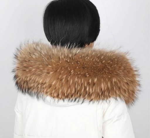 Obszycie do kaptura wykonane z futra jenota naturalnego ,uszyty już na podszewce z pętelkami na guziki. Obszycie gotowe do przymocowania na kaptura. Aukcja dotyczy 80 cm x 20cm