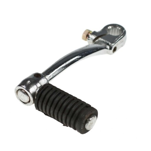 Dźwignia rozrusznika nożnego, chromowana, metalowa, do motorowerów Romet. Produkt wysokiej jakości w komplecie z gumą oraz śrubą montażową. Pasuje do: