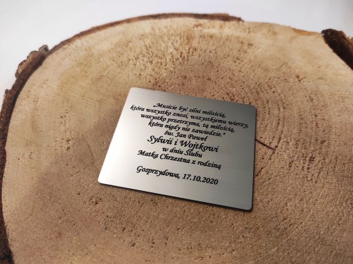 - Na Państwa specjalne życzenie wykonujemy personalizowany grawer - dedykację na tabliczce z laminatu grawerskiego,