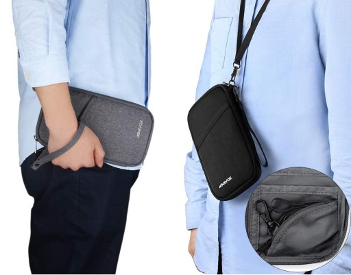 PASZPORTÓWKA ETUI PORTFEL PODRÓŻNY OCHRONA RFID POKROWIEC SASZETKA NA DOKUMENTY NA RAMIĘ