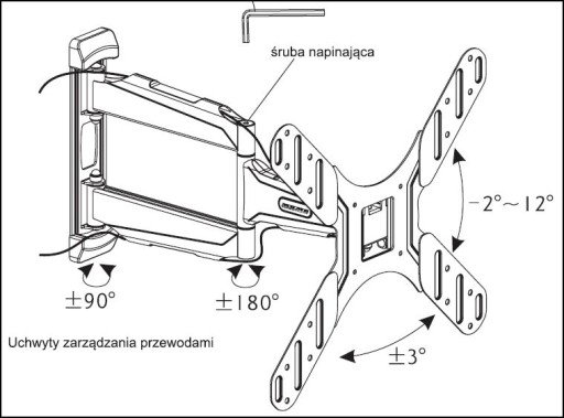 Spełniający standard Vesa aż 400 na 400. Uchwyt wyjątkowo wytrzymały , udźwig 30kg. Regulowany w pionie i poziomie .