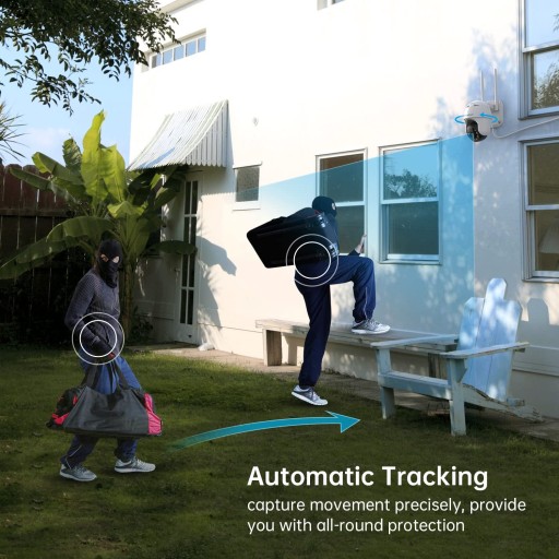 Bezprzewodowa kamera zewnętrzna ieGeek obsługuje automatyczne śledzenie w poziomie, które może dokładnie uchwycić każdy moment ruchu (który może włączyć/wyłączyć funkcję). Możesz również ręcznie obracać kamerę (355°Pan 90°Tilt), aby zlokalizować obszar, który chcesz wyświetlić za pomocą aplikacji, a nawet wstępnie zaprogramowane punkty monitorowania (do 8) z wyprzedzeniem. Zakryj swój dom w 360 °, bądź swoim ochroniarzem .