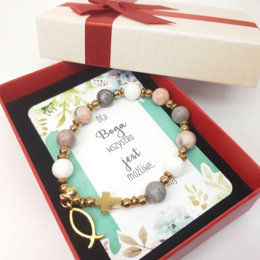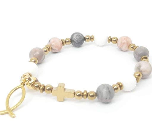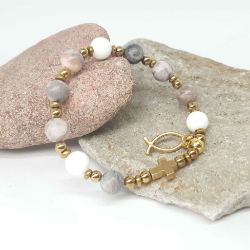 Bransoletka z dziesiątką różańca wykonana ręcznie wg naszego projektu - z kamieni półszlachetnych hematyt , agat, jaspis, jadeit