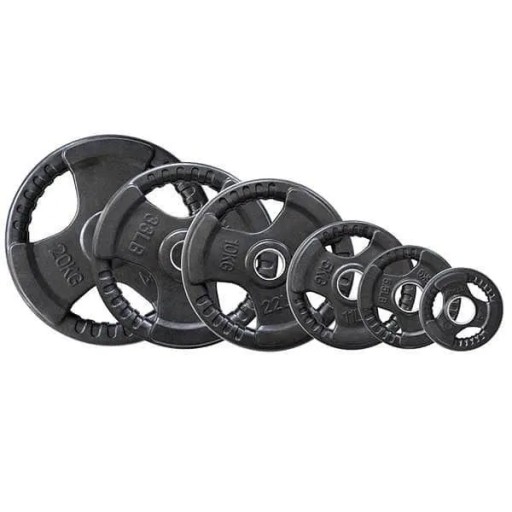Dlatego talerze nie niszczą podłoża podczas odstawiania hantli czy też sztangi. Wewnętrzna średnica otworu została dopasowana do gryfów olimpijskich. Precyzyjne wykonanie zapewnia stabilność ciężaru podczas intensywnego treningu.Talerz olimpijski wyposażony jest w specjalne wyprofilowane uchwyty. Dzięki nim można szybko i bezpiecznie zmienić ciężar np. na sztandze lub gryfie.