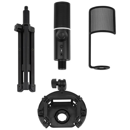 Mikrofon RGB z lekkim, ale wytrzymałym statywem, który umożliwia łatwą regulację kąta i stabilne pozycjonowanie. Kardioidalny wzór odbioru doskonale oddaje Twój głos, jednocześnie blokując niepożądane dźwięki z boków i z tyłu. Posiada 2 tryby odtwarzania dźwięku, tryb pełnego odtwarzania podcastów i jednokierunkowy tryb gry, aby dostosować się do Twoich potrzeb bez względu na rodzaj tworzonej zawartości. Funkcja szybkiego wyciszania pozwala szybko odciąć nagrywanie głosu. Przełączaj się między zaprogramowanymi trybami oświetlenia RGB. Częstotliwość próbkowania do 48 kHz/16 bitów zapewnia krystalicznie czyste nagrania. Filtr pop filtruje trzaski i dźwięki wybuchowe.