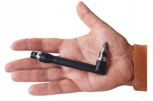 6-kątny uchwyt do bitów pozwala na wkręcanie czy też odkręcanie śrub pod kątem 90°, dzięki jego antypoślizgowej strukturze pozwala na bezpieczny chwyt nawet przy pracy nad głową w niedostępnych miejscach, tam gdzie inne narzędzia mają problem z dotarciem.