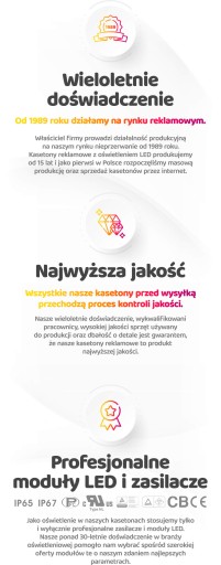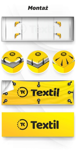 PRZÓD KASETONU: materiał tekstylny z drukiem UV 2xCMYK i obszyciem silikonowym