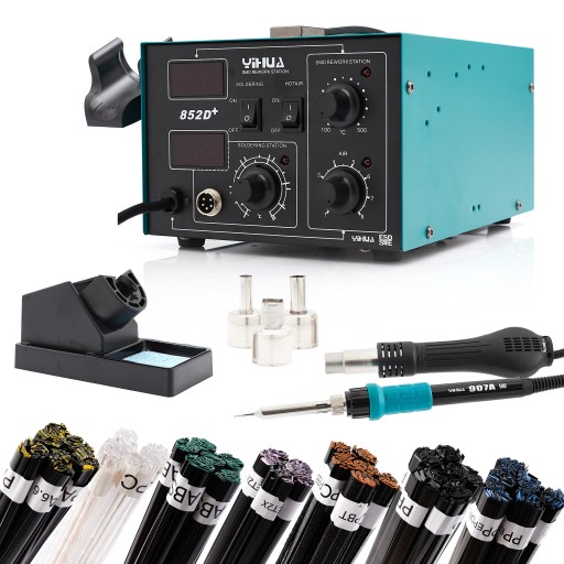 Stacja lutownicza 2w1 Yihua 852D+ 740W z zestawem elementów do spawania plastiku