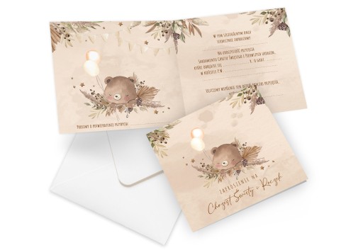 Святое Крещение и приглашение на годовщину 2 в 1 Плюшевый мишка в стиле бохо