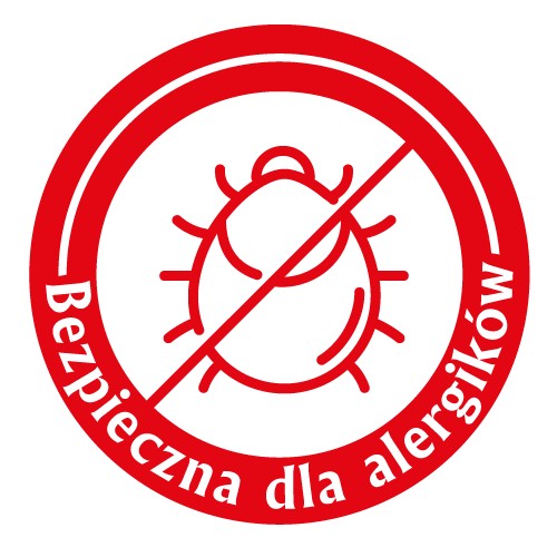 Kołdra jest bezpieczna dla alergików - 100% puszyste włókno poliestrowe, rurkowe, spiralne, silikonizowane (HCS) umożliwia pranie w wysokiej temperaturze, co zabija wszelkiego rodzaju roztocza i inne mikroorganizmy.