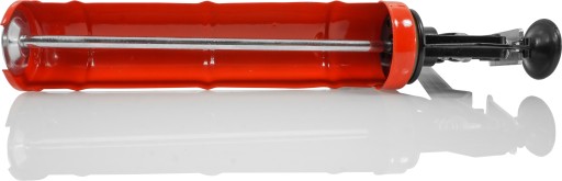 Wyciskacz do mas gęstych. Lekki, wykonany z blachy stalowej, lakierowany. Wygodny, profilowany, ergonomiczny uchwyt, pozwala na skuteczne aplikowanie mas gęstych np. silikonu, klejów, uszczelniaczy, smarów itp. Wzmocniona konstrukcja zwiększa siłę nacisku i skuteczność aplikacji, szczególnie istotne przy wyciskaniu gęstych, kleistych substancji.