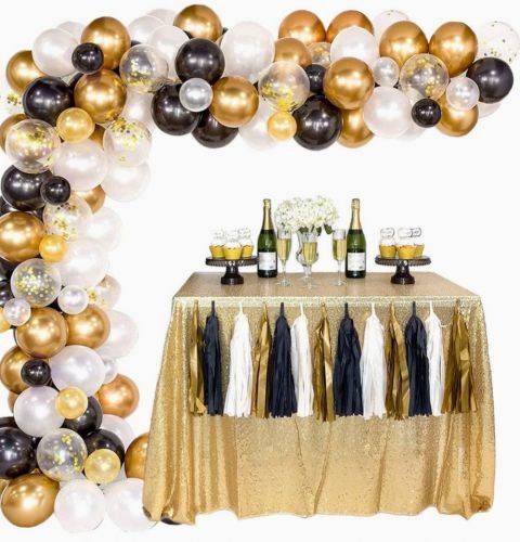 ШАР-ГИРЛАНД 120ШТ ЗОЛОТО ЧЕРНЫЙ КОНФЕТТИ 5м
