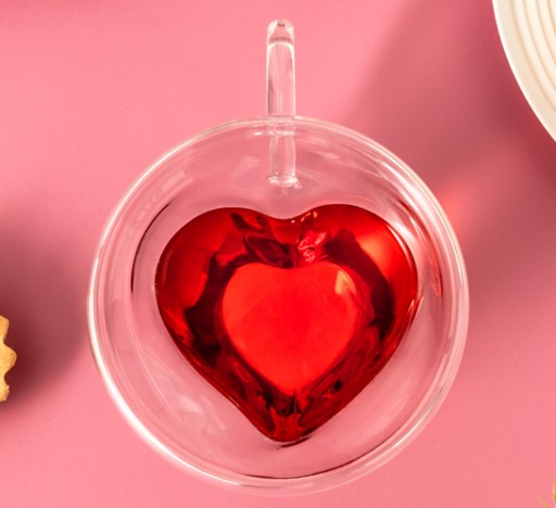 Wyjątkowo serdeczna ;) szklanka z wnętrzem w kształcie serca. Niecodzienny prezent od serca dla ukochanej, ukochanego czy dla innej osoby bliskiej naszemu sercu. Szklanka posiada podwójne ścianki dla większego komfortu jej użytkowania. Gorąca herbata czy kawa nie będzie parzyć w palce, a zimny napój na dłużej pozostanie przyjemnie schłodzony. Wewnętrzny kształt szklanki najlepiej widać po wlaniu do niej kolorowego napoju. Wprowadź trochę urozmaicenia do swojej kuchni z naszą wyjątkową szklanką, która na pewno będzie się wyróżniać wśród innych! :)