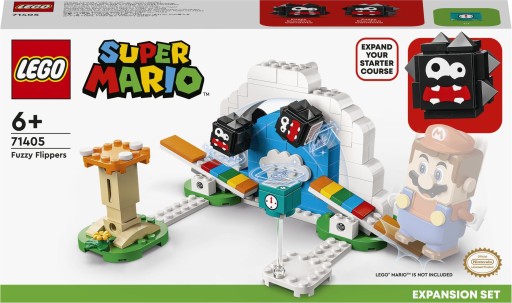 Dzięki zestawowi Salta Fuzzy’ego — zestaw rozszerzający dzieci mogą zbudować podniebny tor przeszkód ze świata Super Mario™ podczas budowania poziomów LEGO® Super Mario™ z klocków.