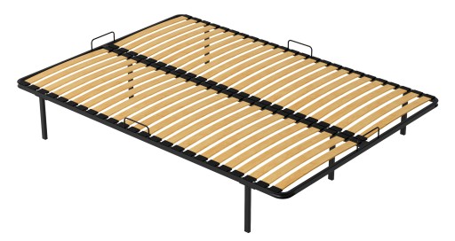 Elastyczny stelaż pod materac (wkład do łóżka, dostawka hotelowa)! Stelaż wykonany jest z profilu 20x30x2, malowany proszkowo w kolorze czarnym. Wypełniony jest on profilowanymi listwami brzozowymi o szerokości 53mm, które są zakotwiczone w ramie ruchomymi końcówkami z tworzywa sztucznego. Stelaż posiada 48 elastycznych listew osadzonych w kauczukowych uchwytach zapewniających doskonałe podparcie oraz amortyzację materacowi. Stelaż wyposażony jest w 6 nóżki stalowe wykonane z profilu 20x30x2, które zakończone są plastikowymi końcówkami, górna część nóżki przykręcana jest do stelaża za pomocą śrub. Standardowa wysokość stelaża to 30cm, ale istnieje możliwość wykonania dowolnej wysokości stelaża za dopłatą. Dostawka posiada specjalne ramki podtrzymujące materac, dzięki nim materac nie zsunie się z łóżka. Stelaże te można wykorzystywać jako samodzielne łóżko do spania, dostawki hotelowe lub stałe wkłady do skrzyni.