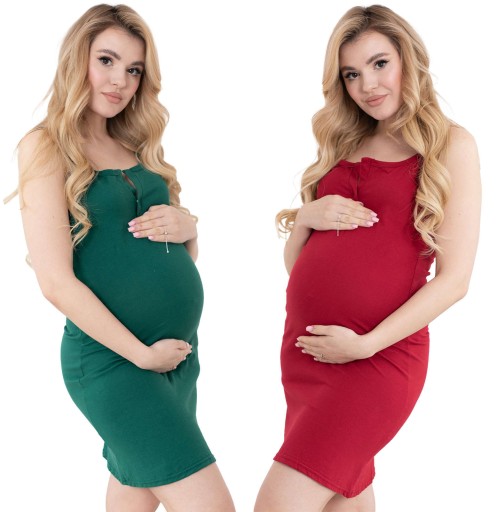 ZESTAW 2X KOSZULA NOCNA CIĄŻOWA NA RAMIĄCZKACH DO KARMIENIA ZAPINANA NA NAPY BORDOWA I ZIELONA