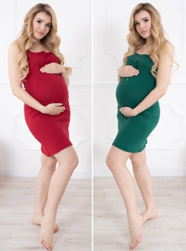 ZESTAW 2X KOSZULA NOCNA CIĄŻOWA NA RAMIĄCZKACH DO KARMIENIA ZAPINANA NA NAPY BORDOWA I ZIELONA