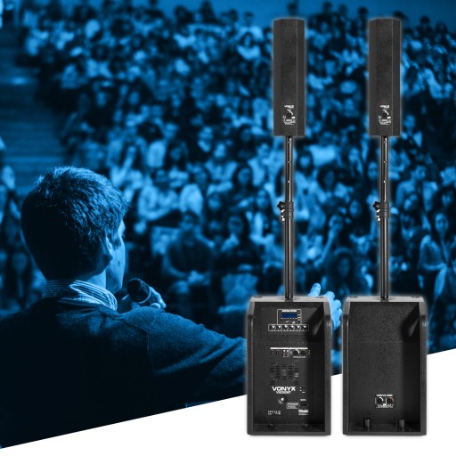 Vonyx VX1050BT to aktywny system dźwiękowy Bluetooth 1150W, z którego można korzystać natychmiast po otrzymaniu. Zestaw składa się z dwóch 12" subwooferów, z których jeden jest aktywny, zestawu topów z 3x 4,5" średniotonowym i 1x 2,5" tweeterem, mikrofonem, słupkami pośrednimi i wszystkimi niezbędnymi kablami do połączenia wszystkiego ze sobą. Zestaw jest szybki i łatwy w montażu , posiada moc 1150W, dzięki czemu idealnie nadaje się na wszelkie imprezy.